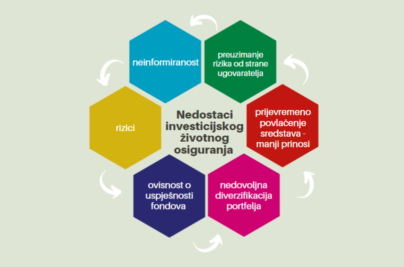 Glavni nedostatak ovog osiguranja je preuzimanje rizika od strane ugovaratelja, odnosno ne postoji garancija da će odabrani fond kroz vrijeme dugoročno ostvarivati velike prinose. Nedostatak može biti i nedovoljna informiranost o karakteristikama i vrstama ulaganja te nedovoljno poznavanje fondova u koje se ulaže. Također, ugovaratelj mora biti upoznat sa rizicima kod ugovaranja osiguranje te izbora fondova i u skladu s njima odabrati strategiju. Rizike je moguće disperzirati ulaganjem u više različitih fondova, a prinos ugovaratelja ovisi o uspješnosti fondova.